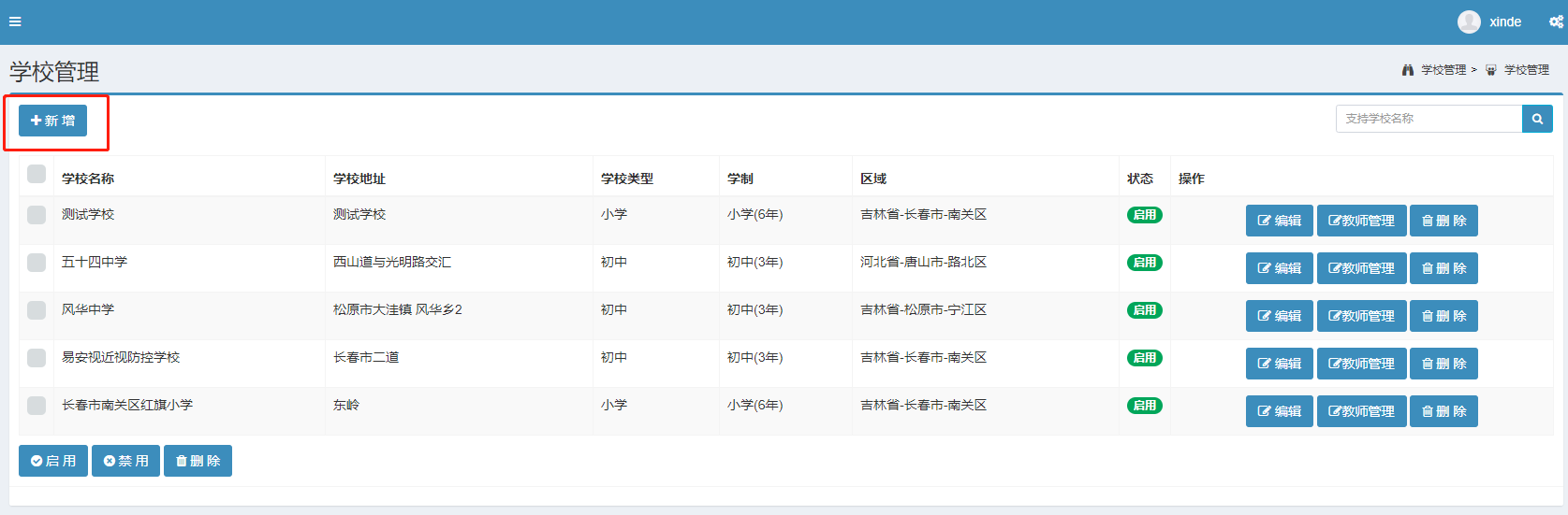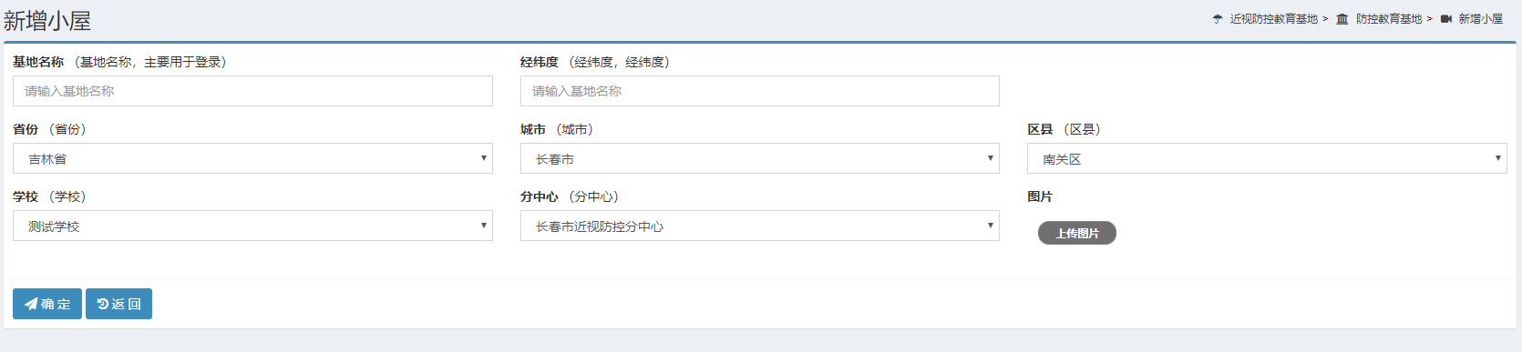 3)增加近视防控基地 【近视防控教育基地】-》【防控教育基地】 点击新增 输入信息