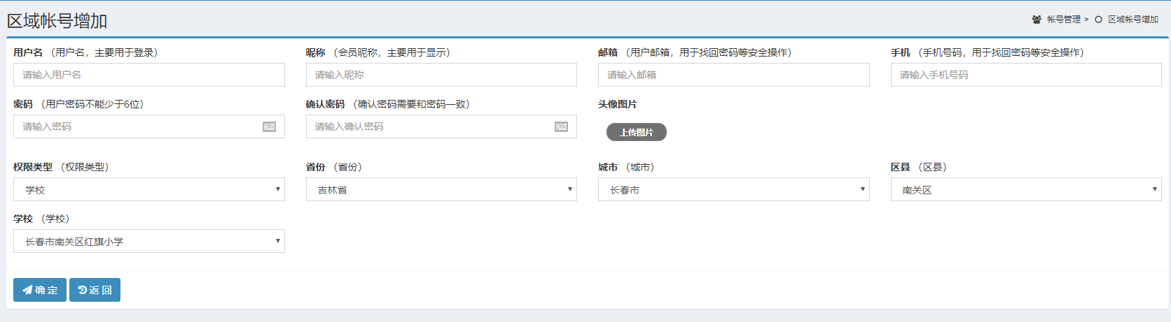 2)为学校配置登录帐号,【帐号管理】-》【区域帐号】